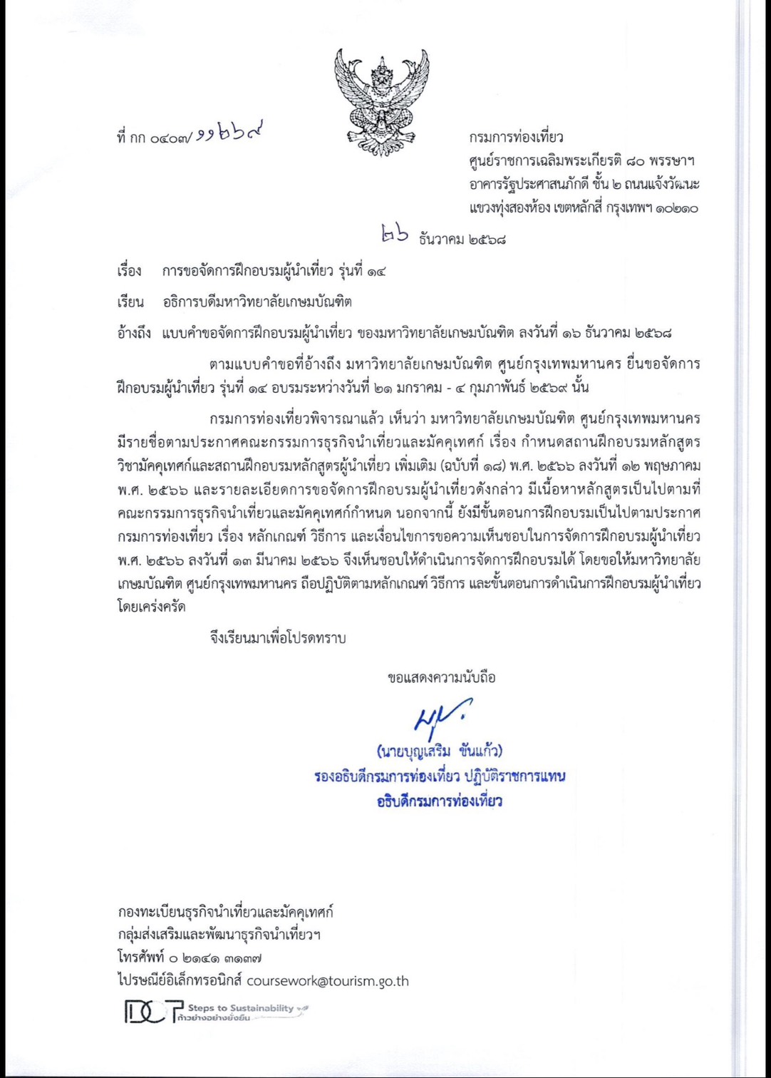 เปิดอบรมปลายเดือน มีนาคม 2569